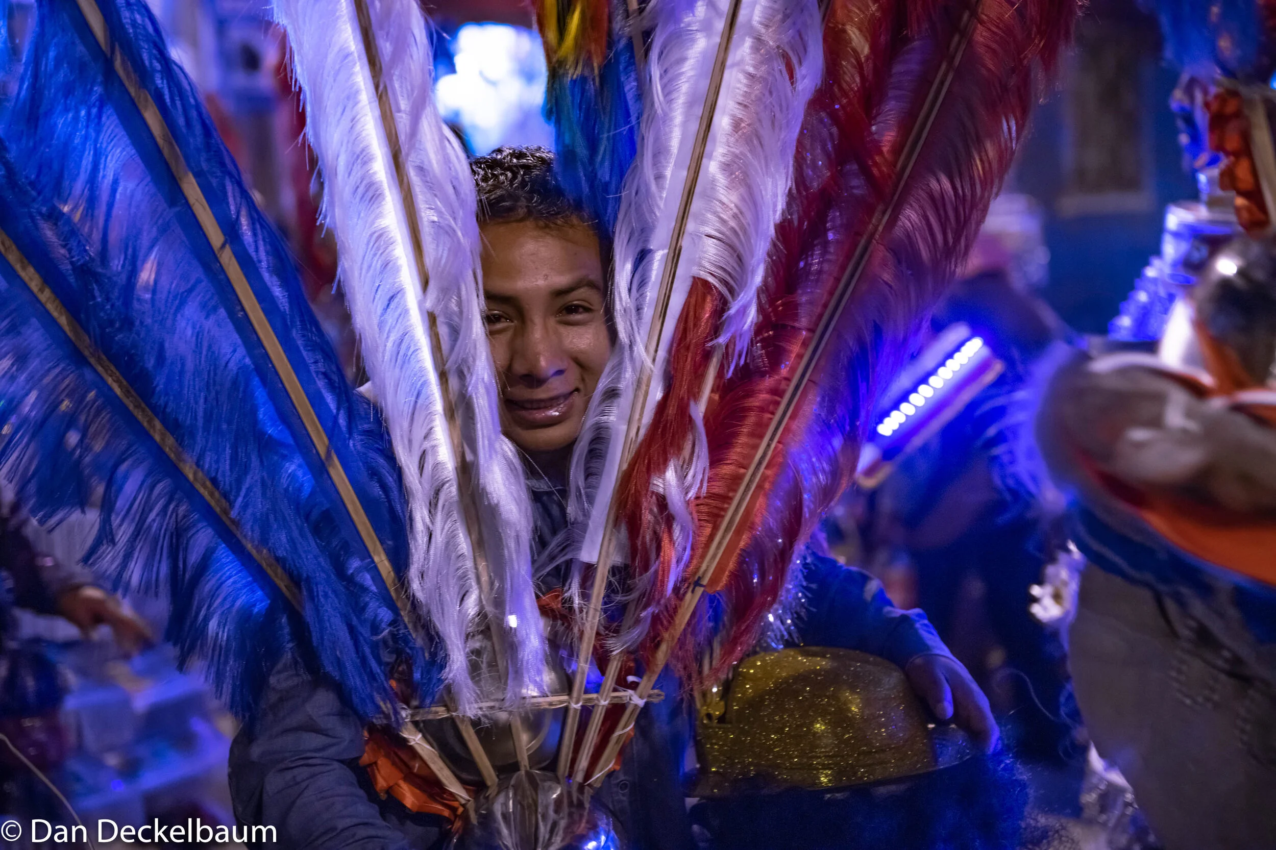 The following day we set off towards the mystical Lake Titicaca – the largest lake in South America and the highest navigable lake in the world. We would spend one day in Copacabana – a usually peaceful fishing town, with not too much to do. But we had managed to coincide our visit with the celebration of Fiesta de la Cruz – an important festival that begins on May 3rd and lasts several days. The small town exploded with extravagant and bright costumes, synchronized dancing and singing, and boisterous brass music. Thousands of Bolivians, young and old, pilgrimaged from all over the country to take part in this spectacle, each of them twirling in a characteristic folk costume from the different regions of Bolivia. Everyone was covered from head to toe in an overwhelming combination of intricate lace, glittering embroidery, beaded fringes, and most either wore a traditional bowler hat topped with jewels or extravagant feathers. The midday-sun beat down on the sweating but smiling performers, and cans of beer were passed around to quench their thirst. As the day progressed, the crowds got rowdier, and what started as an orderly procession turned into a full-on party that continued to the crack of dawn.